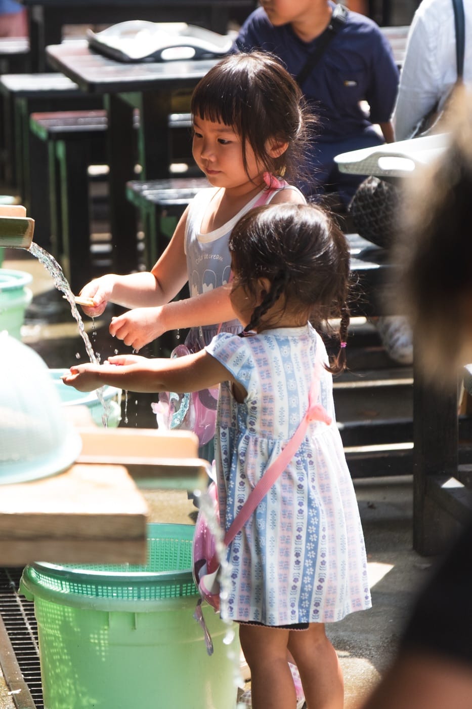 I sat down near a young Japanese couple with a toddler, who playfully knocked over his water bottle. Free of kids, I jumped up, grabbed it, handed it back. Dozo (here you go). Arigatō gozaimasu (thank you), they said bowing multiple times. I replied iie iie (it's nothing) and added kodomo wa kawaii desu ne (your child is cute isn't he!), followed with a parting, yoi ichinichi o (have a good day). They surprised me by finding me later, introducing me to their son, and replying in kind, wishing me a good day. It was a tender thing. That kind of small connection cuts through any cultural distance. Fellow parents, figuring it out.