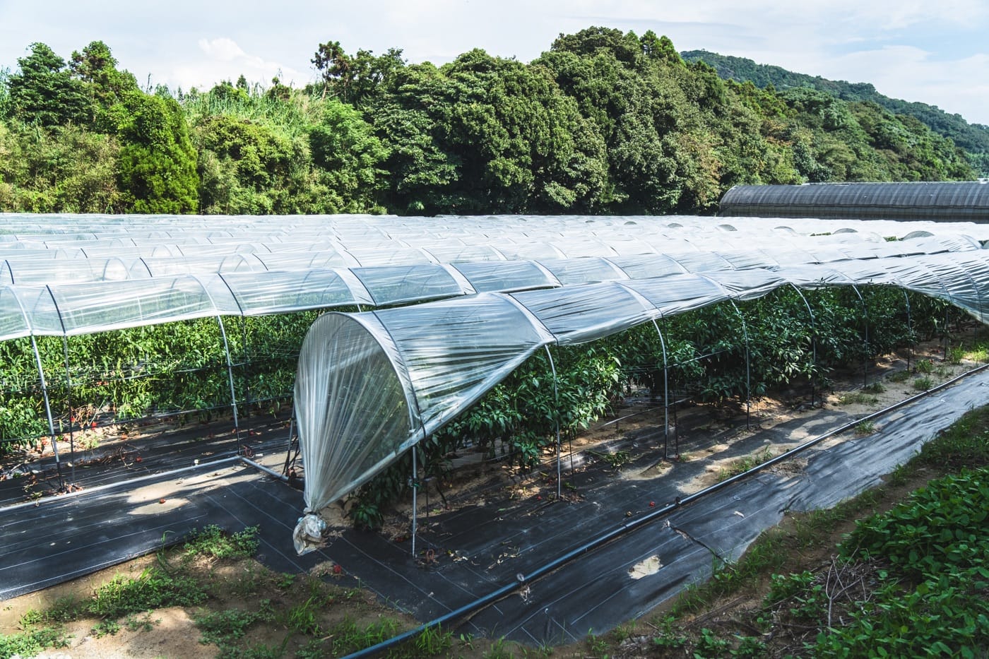 high tunnels (plastic-covered greenhouses). Some filled with strawberries, some with shiso leaves maybe? Tractors, culverts, irrigation ditches. All of it felt familiar, reminders of where I come from, growing up in Colorado. My sister still runs a permaculture vegetable farm, so snapping photos of culverts and tractors to send back home made me feel close to them, even halfway across the world.