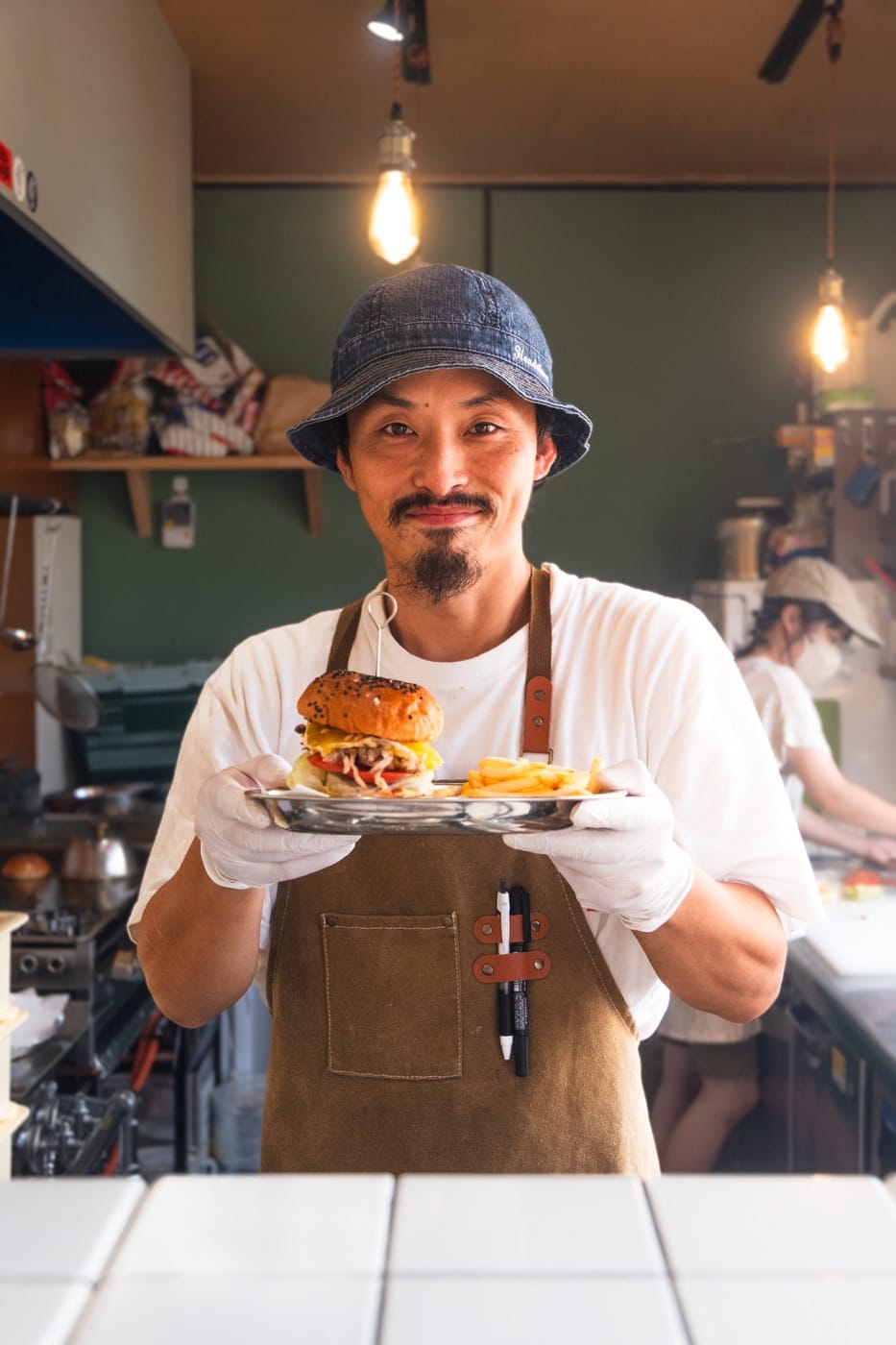 Around four o’clock I was starving. What I really wanted was a cheeseburger or something equivalent. The Japanese have a habit of taking any food and making it better. I was confident I could find something that would not disappoint. Oh My Goodness, was just the place. The owner and his wife had built the place themselves, proud of Kyushu, proud of what they'd made. He and his wife were charming hosts.