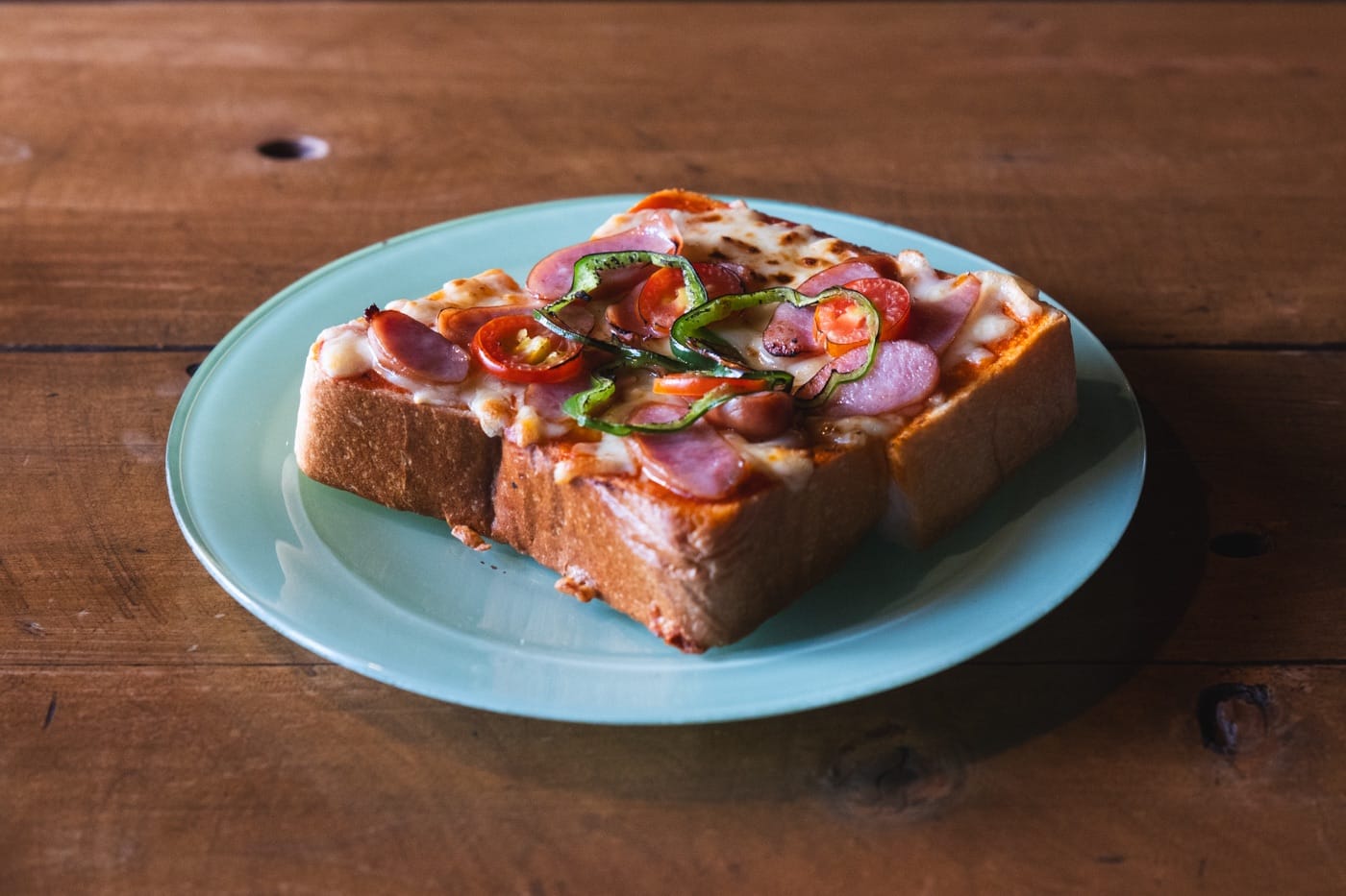 I ordered an iced coffee and my first pizza toast. Craig Mod writes about pizza toast all the time, but this was my first. It’s exactly what it sounds like—thick white cloudy bread, a thin bed of red sauce, mozzarella cheese, and pepperoni or green peppers if your luck is strong, and your kissaten is well chosen.